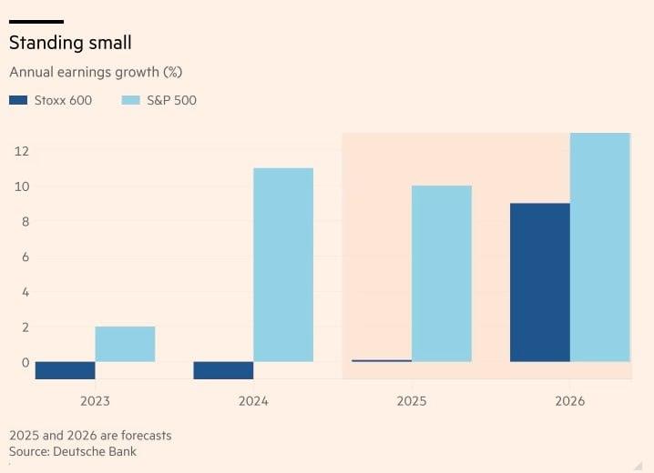 Τα καλύτερα του αναμενομένου αποτελέσματα οδήγησαν αρκετές επενδυτικές ομάδες να αναθεωρήσουν ανοδικά τις εκτιμήσεις τους για το 2026. Για το 2025, τα συνολικά κέρδη των εταιρειών του δείκτη Stoxx προβλέπεται να αυξηθούν κατά περίπου 9%, ρυθμός ιδιαίτερα υγιής και όχι μακριά από το 14% που αναμένεται για την αμερικανική αγορά, ενισχυμένη από τον τεχνολογικό της τομέα.