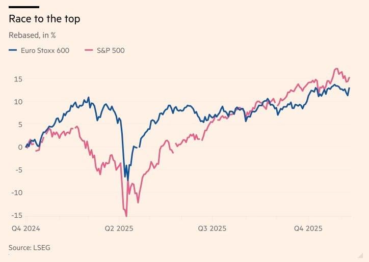 Ο λόγος για τον S&P 500 και τον Stoxx 600, τους δείκτες – σηματωρούς των ΗΠΑ και της Ευρώπης αντίστοιχα, οι οποίοι βρίσκονται «πλάι – πλάι», σε έναν neck-and-neck race, όπως τον χαρακτηρίζει ανάλυση των Financial Times, με τον ευρωπαϊκό δείκτη να έχει ανεβάσει ταχύτητα και ετοιμάζεται να κάνει τη διαφορά μετά από πάνω από δέκα χρόνια μονίμως στη δεύτερη θέση.