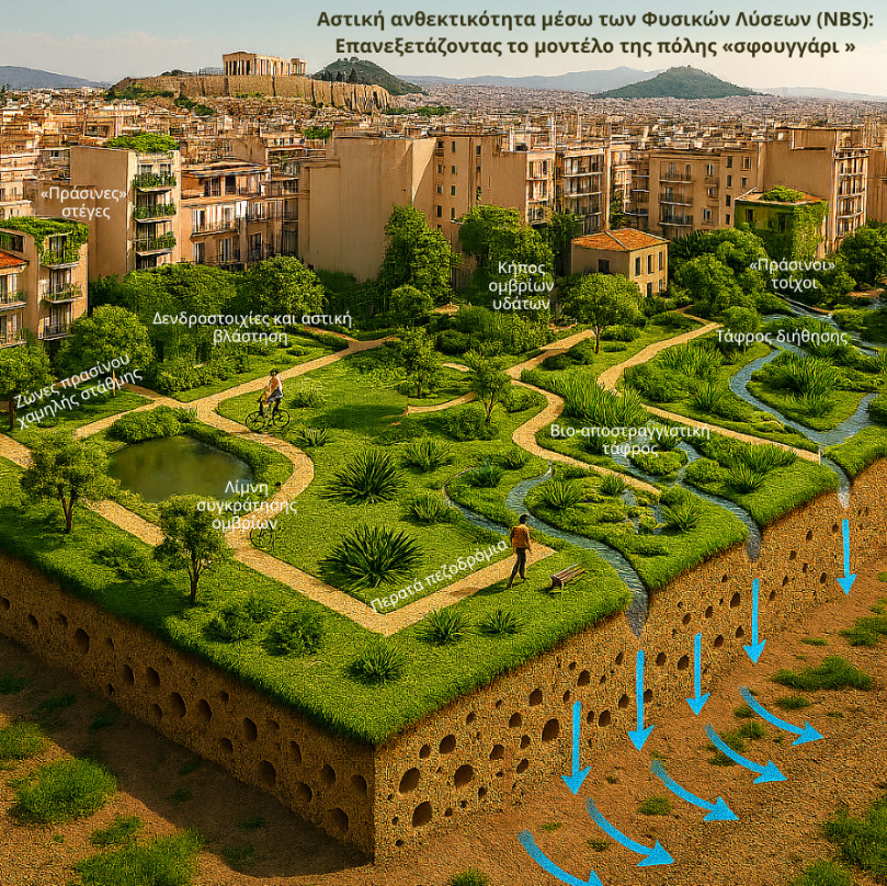 Μπορεί η Αθήνα να γίνει «πόλη – σφουγγάρι»; Δηλαδή, να «ρουφάει» το νερό της βροχής, ώστε αφενός να επαναχρησιμοποιείται, αφετέρου και ταυτόχρονα να μην υπάρχει κίνδυνος πλημμυρικών φαινομένων;
