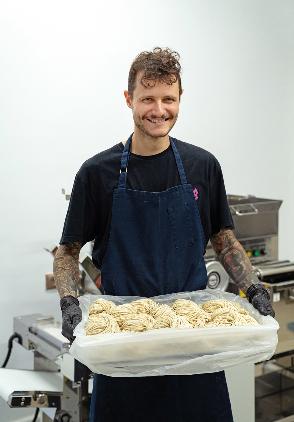 Ήταν καθαρά προσωπικό project, μια ανάγκη να ικανοποιήσω το πάθος μου για ράμεν και νουντλ. Μετά το Tanpopo, το 2024, ξεκίνησα να δουλεύω σε ένα νηπιαγωγείο γιατί αναζητούσα καλύτερη ποιότητα ζωής, λιγότερο στρες και χρόνο για έρευνα και ανάπτυξη. Έτσι, αποφάσισα να στήσω ένα πλήρως εξειδικευμένο εργαστήριο παραγωγής ράμεν και udon noodles. Το μηχάνημα είναι custom, κατασκευασμένο στην Ιαπωνία, αξίας 35.000 ευρώ – μια σοβαρή επένδυση. Πιστεύω πραγματικά ότι υπάρχει χώρος στην Αθήνα για κάτι τέτοιο. Προς το παρόν, δεν υπάρχει άλλος παραγωγός ramen noodles στην Ελλάδα. Θέλω οι σεφ και οι επιχειρηματίες που θα τα δοκιμάζουν να είναι χαρούμενοι, αυτή είναι η προτεραιότητά μου.