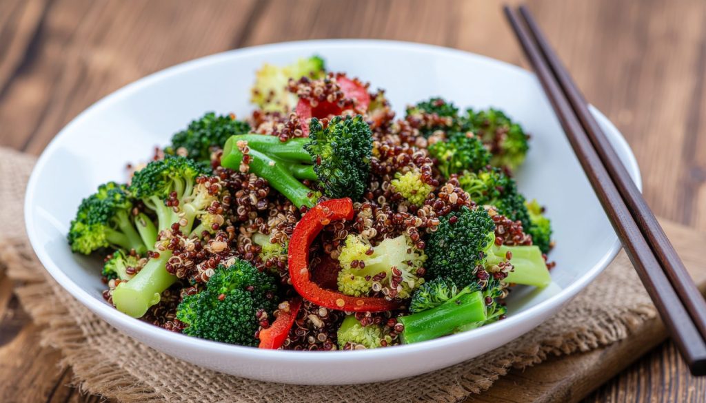 Η κινόα είναι ιδανική για γρήγορα και θρεπτικά γεύματα, και συνδυάζεται τέλεια με λαχανικά και ρεβίθια. Βράσε 1 φλιτζάνι κινόα σύμφωνα με τις οδηγίες της συσκευασίας. Εν τω μεταξύ, σε ένα μεγάλο τηγάνι ζέστανε 1 κ.σ ελαιόλαδο και πρόσθεσε ψιλοκομμένα λαχανικά της αρεσκείας σου όπως καρότα, πιπεριές, κολοκυθάκι ή ακόμη και μπρόκολο. Σόταρε για 5-7 λεπτά μέχρι τα λαχανικά να μαλακώσουν. Πρόσθεσε 1 φλιτζάνι βρασμένα έτοιμα ρεβίθια, λίγη σόγια σος, χυμό λεμονιού και 1 κ.γ. μέλι. Ανακάτεψε καλά και σέρβιρε την κινόα ανακατεμένη με τα λαχανικά και τα ρεβίθια. Το αποτέλεσμα είναι ένα γεύμα γεμάτο πρωτεΐνη, φυτικές ίνες και γεύση, που μπορείς να ετοιμάσεις σε λιγότερο από 30 λεπτά, ιδανικό για lunchbox ή για ένα γρήγορο δείπνο.
