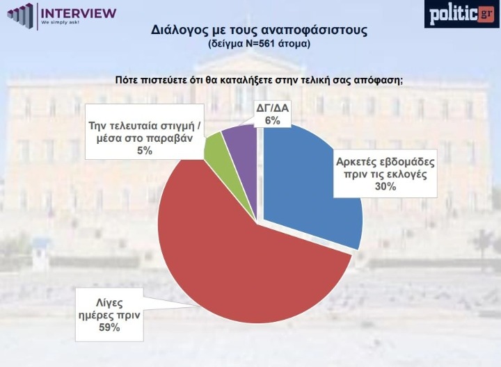- Το 59% δηλώνει ότι θα αποφασίσει λίγες ημέρες πριν τις εκλογές,