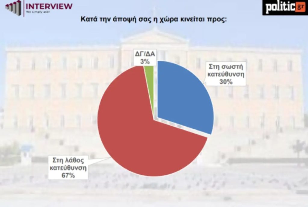 - 67% των πολιτών πιστεύει ότι η Ελλάδα πορεύεται «στη λάθος κατεύθυνση»,