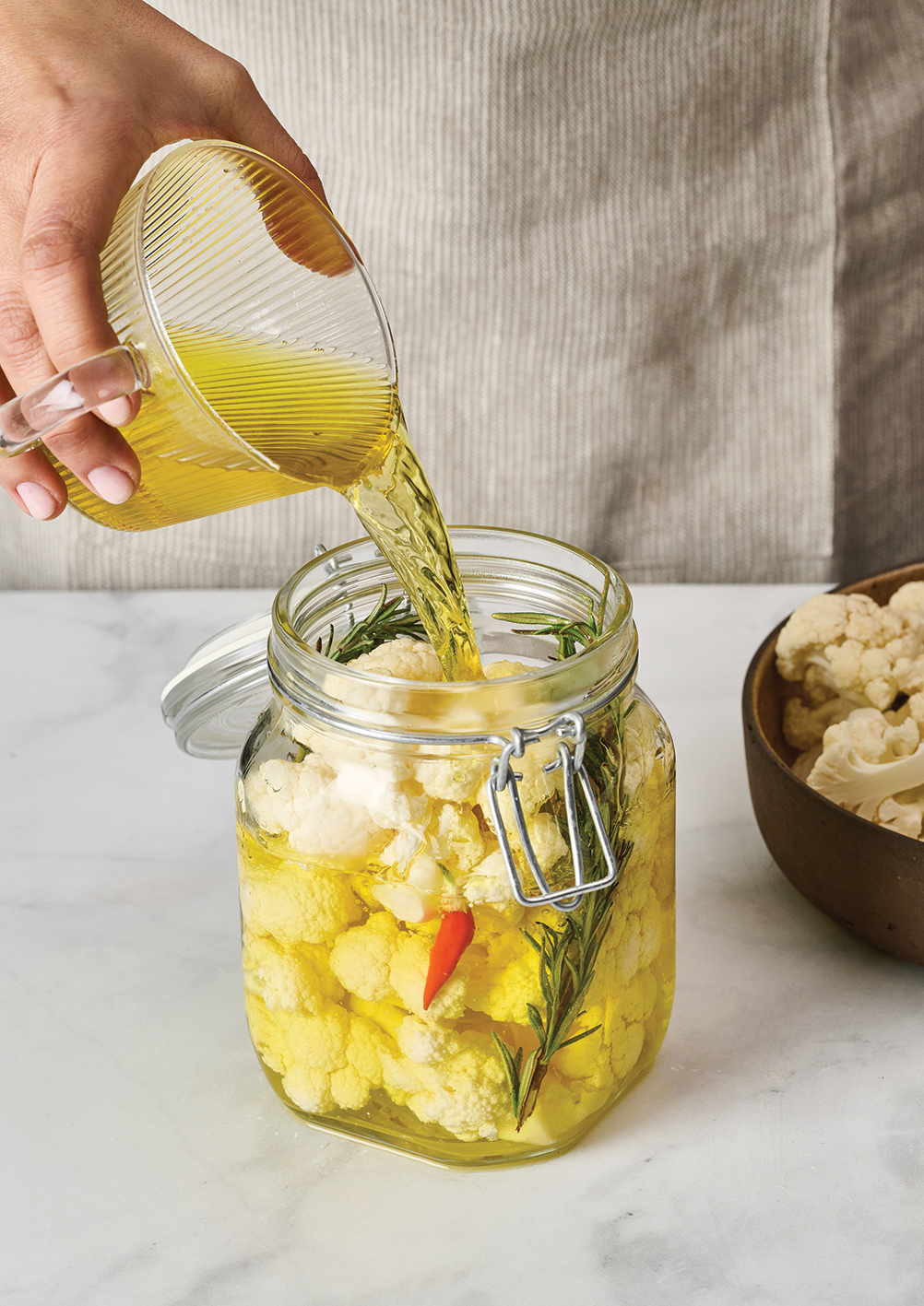 Κουνουπίδι τουρσί με κρόκο Κοζάνης και τσίλι