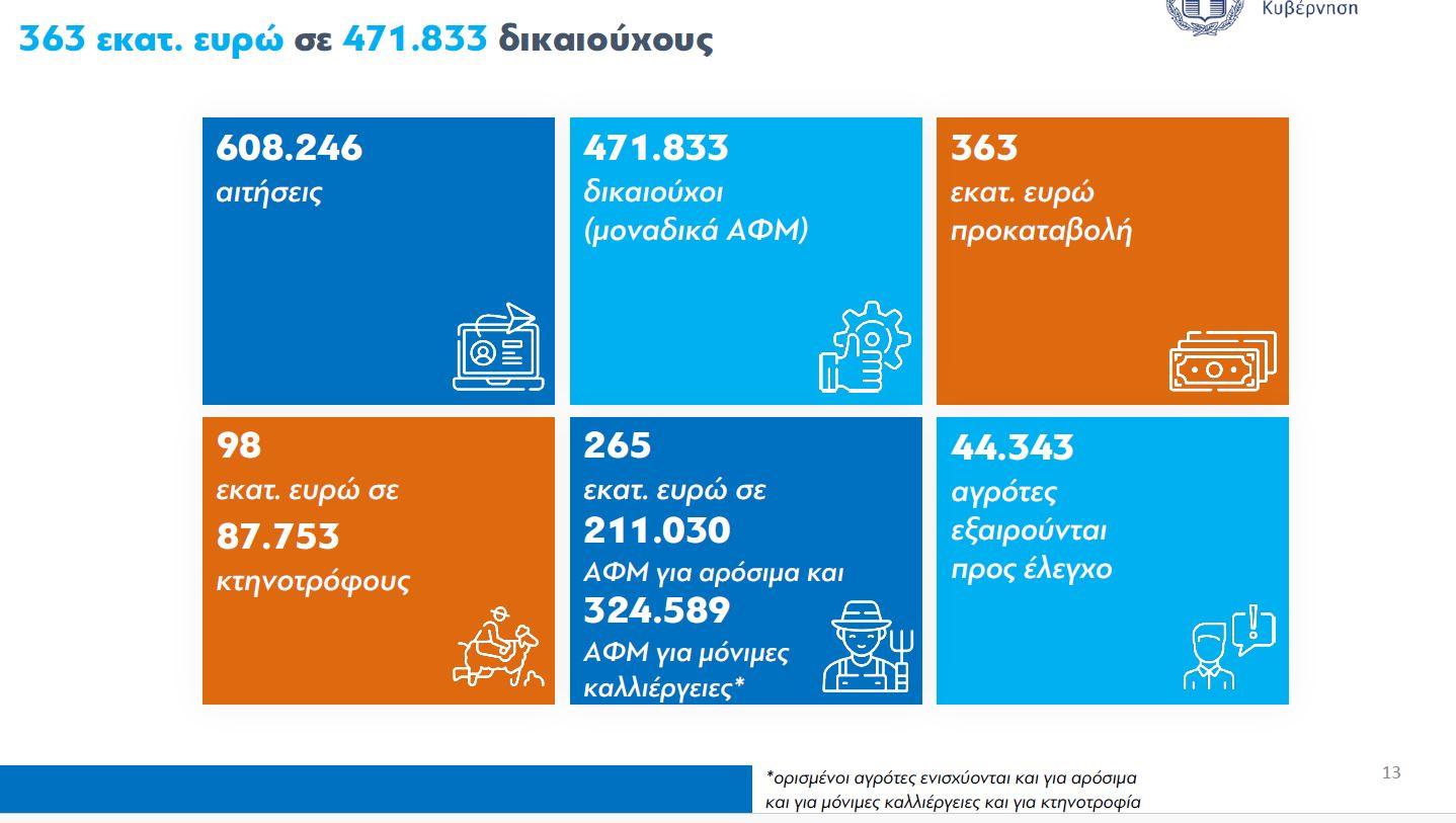 Έτσι, εκτός πληρωμών τίθενται από τα 471.833 μοναδικά ΑΦΜΑ, 44.343 αγρότες, οι οποίοι τίθενται σε διαδικασία διερεύνησης, ενώ μια ακόμη κατηγορία δεν θα λάβει ενισχύσεις καθώς σχετίζονται με παράνομες επιδοτήσεις και τα περιουσιακά τους στοιχεία έχουν «παγώσει».
