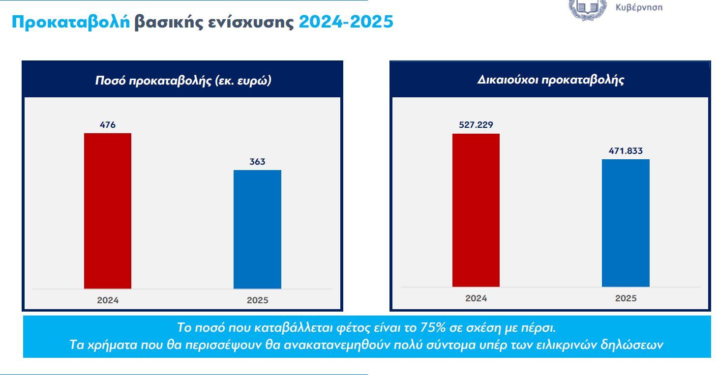 Σε μόλις 363 εκατ. ευρώ ανέρχεται η προκαταβολή της βασικής ενίσχυσης από τον ΟΠΕΚΕΠΕ, που θα αρχίσει να πιστώνεται από αύριο Παρασκευή 28 Νοεμβρίου σε 471.833 δικαιούχους, έναντι των 476 εκατ. ευρώ που πληρώθηκαν το 2024 σε 527.229 δικαιούχους, με 44.343 αγρότες να μένουν εκτός πληρωμών.