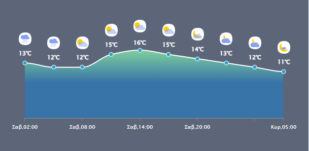 Οι άνεμοι θα πνέουν στα δυτικά μεταβλητοί και βαθμιαία νότιοι νοτιοανατολικοί 3 με 4 μποφόρ και στα ανατολικά από δυτικές διευθύνσεις με την ίδια ένταση. Η θερμοκρασία θα σημειώσει μικρή άνοδο.