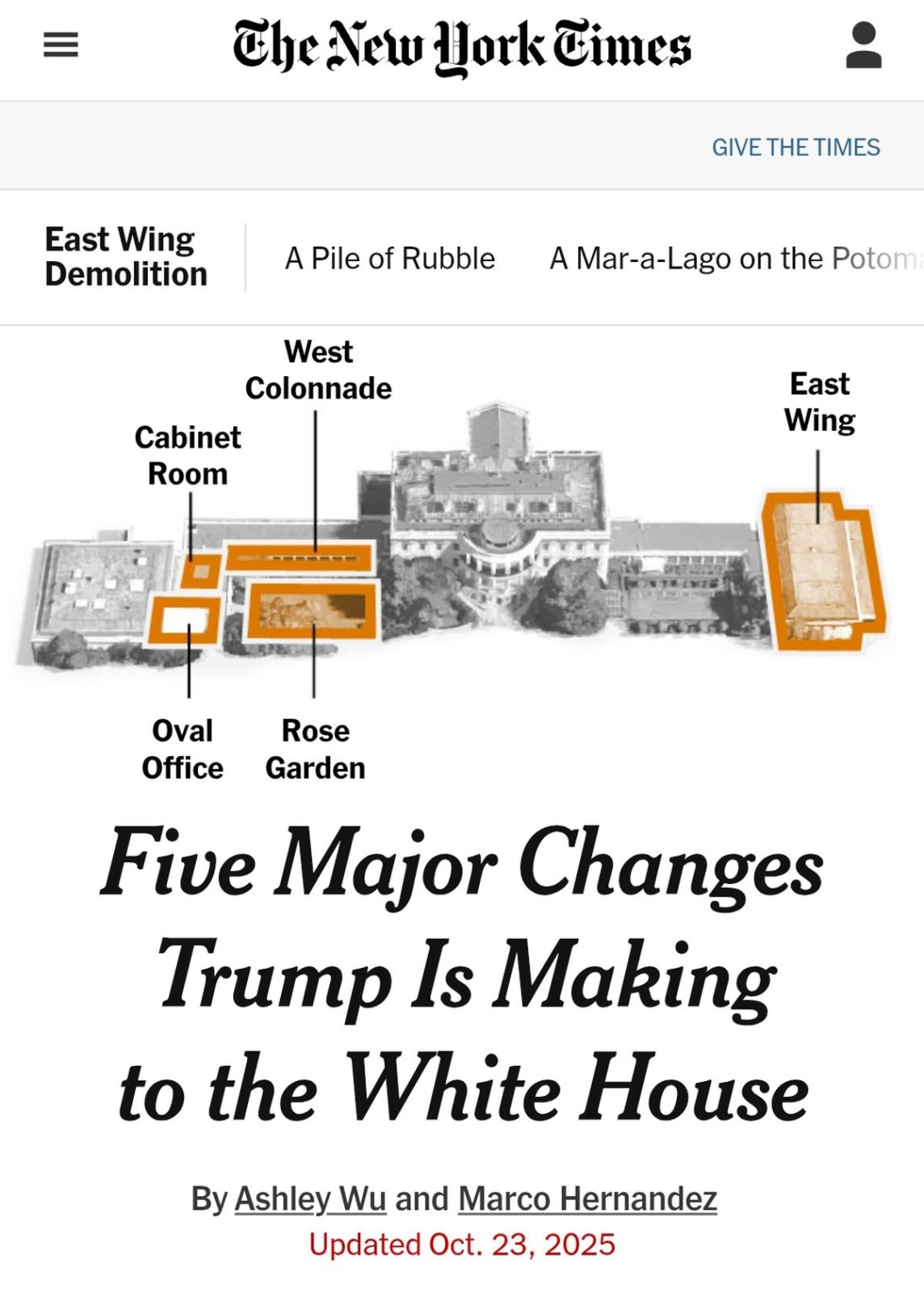 H Ανατολική Πτέρυγα – ένα τμήμα του συγκροτήματος του Λευκού Οίκου που υπήρχε για περισσότερο από έναν αιώνα – κατεδαφίστηκε για να δημιουργηθεί ο χώρος της νέας αίθουσας χορού που σύμφωνα με τα αμερικανικά μέσα έχει γίνει «εμμονή» του προέδρου Ντόναλντ Τραμπ. Πηγές αναφέρουν στον αμερικανικό Τύπο ότι οι αλλαγές έχουν σχεδιαστεί για να ανακατασκευάσουν τον Λευκό Οίκο ώστε να μοιάζει με το Mar-a-Lago, το ιδιωτικό κλαμπ του Τραμπ στη Φλόριντα.