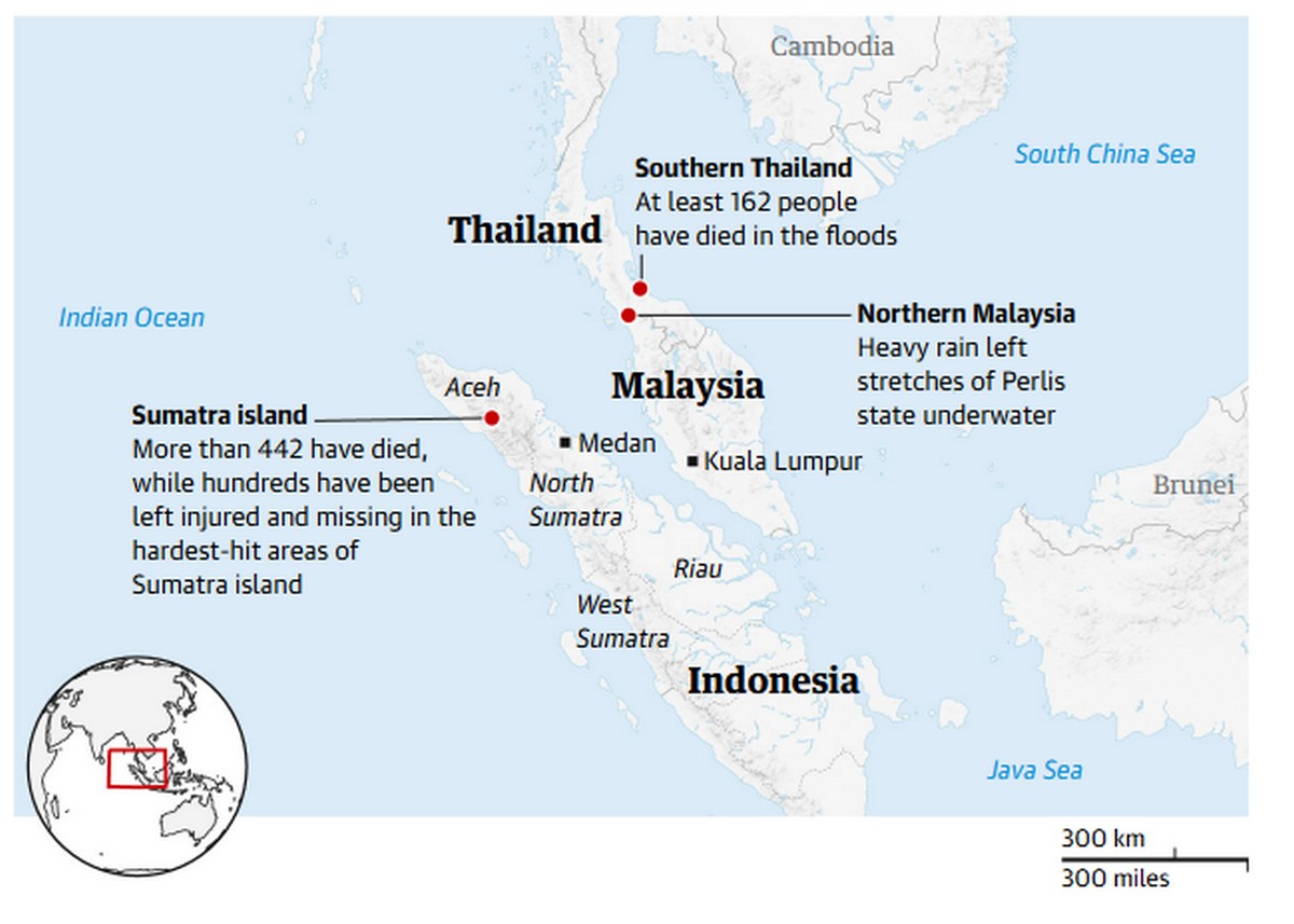 Στην Ινδονησία, αξιωματούχοι ανέφεραν ότι περισσότεροι από 442 άνθρωποι έχασαν τη ζωή τους και άλλοι 402 αγνοούνται, ενώ οι αρχές προσπαθούσαν να φτάσουν σε μερικές από τις πιο πληγείσες περιοχές του νησιού Σουμάτρα, όπου χιλιάδες άνθρωποι είχαν αποκλειστεί χωρίς βασικά εφόδια.