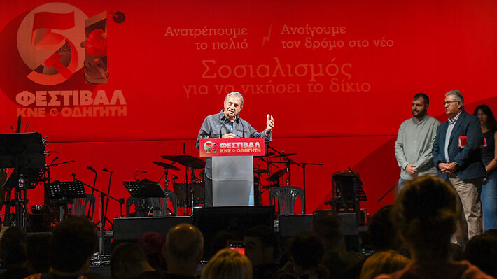 Ο Γιώργος Νταλάρας και ο Δημήτρης Κουτσούμπας στο αφιέρωμα του Φεστιβάλ της ΚΝΕ στον Σταύρο Κουγιουμτζή