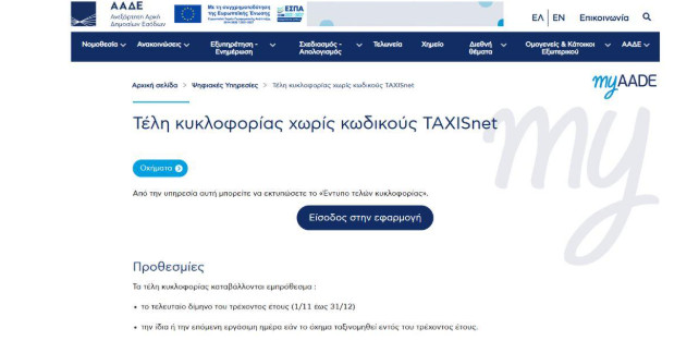 Οι ιδιοκτήτες οχημάτων μπορούν να μπουν στην ΑΑΔΕ στην εφαρμογή «Τέλη κυκλοφορίας χωρίς κωδικούς».