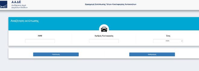 Κατόπιν οι ιδιοκτήτες από την υπηρεσία αυτή μπορούν να εκτυπώσουν το «Έντυπο τελών κυκλοφορίας».