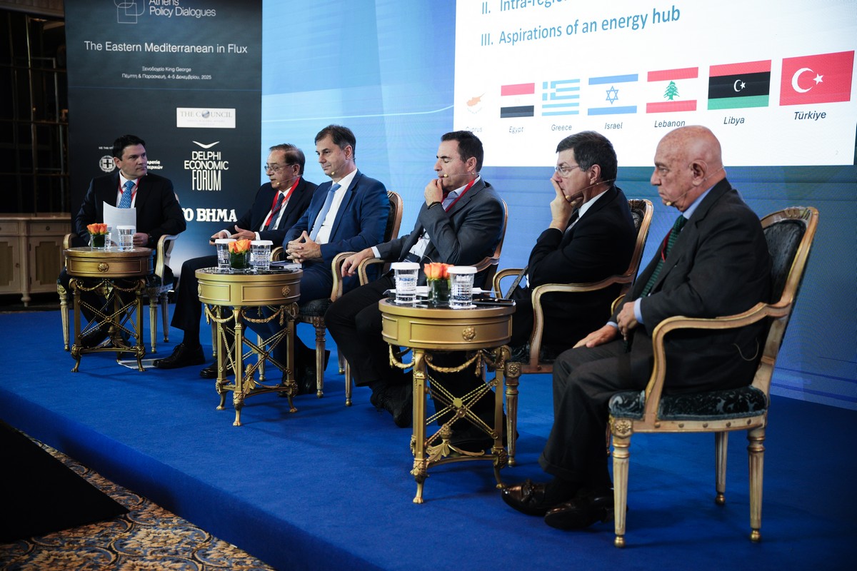 Ανοίγοντας τη συζήτηση, ο Γκίκας Χαρδούβελης, Πρόεδρος της Εθνικής Τράπεζας, παρουσίασε ευρήματα έρευνας για τους εμπορικούς δεσμούς επτά χωρών της Μεσογείου (Τουρκία, Αίγυπτος, Ελλάδα, Κύπρος, Ισραήλ, Λίβανος, Λιβύη), τις οικονομικές ανισορροπίες και τις ενεργειακές προοπτικές τους. Σχολίασε ότι οι χώρες της περιοχής εμφανίζουν μεγάλες διαφορές ως προς τον πληθυσμό, το πραγματικό ΑΕΠ ανά κάτοικο και τους ρυθμούς ανάπτυξης της τελευταίας δεκαετίας. Επεσήμανε ότι «το βασικό συμπέρασμα είναι ότι οι χώρες είναι πολύ διαφορετικές μεταξύ τους», τόσο σε επίπεδο επενδύσεων – όπου η Τουρκία «γίνεται πραγματικά οργασμός» – όσο και σε δείκτες όπως το έλλειμμα τρεχουσών συναλλαγών.