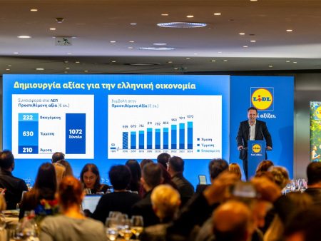 Ωστόσο, όπως τόνισε ο κ. Brandenburger, η επιτυχία δεν μετριέται μόνο σε μερίδιο αγοράς, αλλά στο αποτύπωμα που αφήνει στην οικονομία, την κοινωνία και το περιβάλλον. Η 10η μελέτη κοινωνικο-οικονομικής επίδρασης της εταιρείας άλλωστε το επιβεβαιώνει, με εντυπωσιακά νούμερα που καταδεικνύουν τη σημαντική συνεισφορά της Lidl Ελλάς στην εθνική οικονομία. Ειδικότερα, η συμβολή της στο ΑΕΠ έφτασε το 0,52% το 2024 (€1,07 δισ.), υποστήριξε 38,1 χιλιάδες θέσεις εργασίας στην ελληνική οικονομία και κατέβαλε €438 εκατομμύρια σε φόρους και ασφαλιστικές εισφορές προς το ελληνικό δημόσιο.
