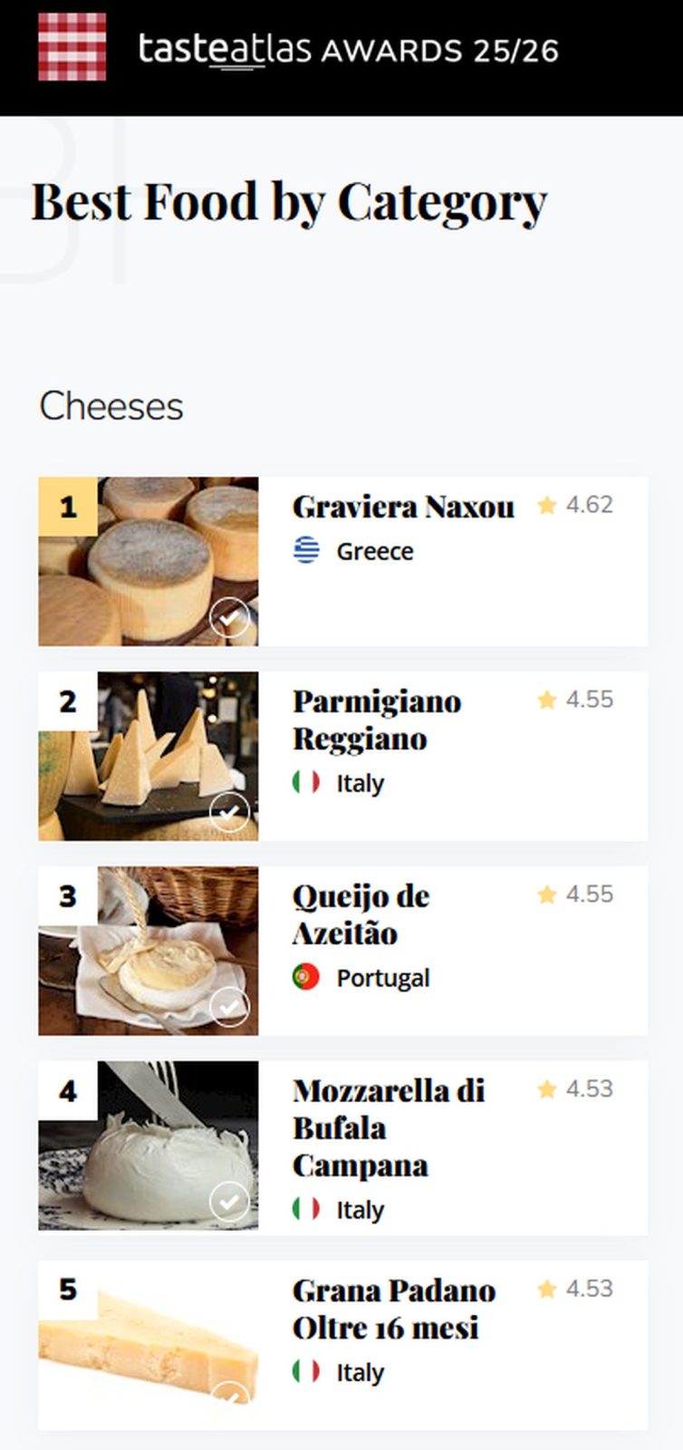 «Χρυσό» στη γεύση πήρε η γραβιέρα Νάξου με το Taste Atlas, τη δημοφιλή πλατφόρμα γαστρονομικού ενδιαφέροντος, να την ανακηρύσσει ως το καλύτερο τυρί του κόσμου, αφήνοντας στη δεύτερη θέση την ιταλική παρμεζάνα.