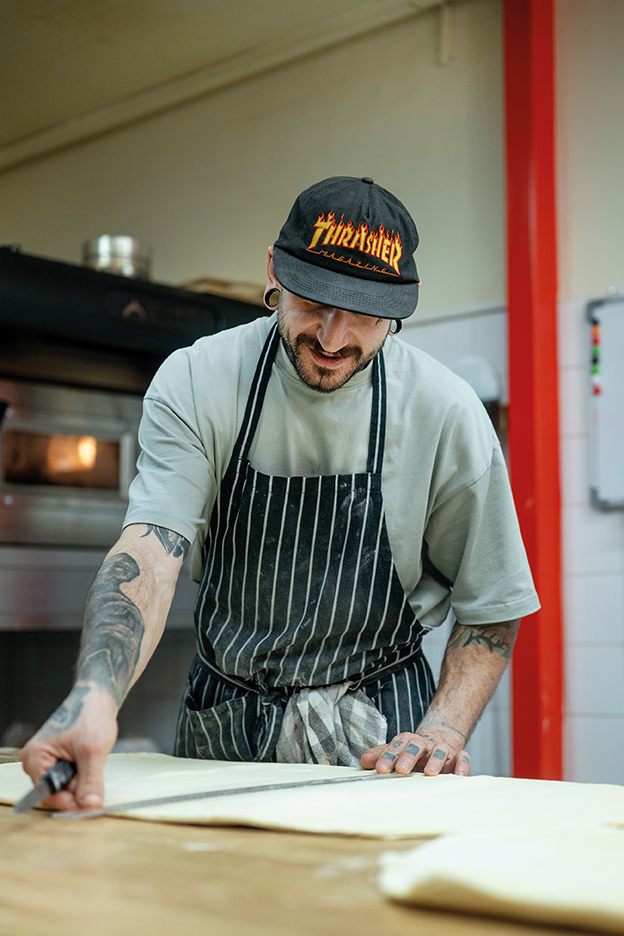 Έχουμε ένα συνεργάτη, τον Παναγιώτη, με τον οποίο έχουμε ξαναδουλέψει σε εστιατόρια και έχει εμπειρία σε φούρνο. Ήταν και pizzaiolo μας στην Αίγλη, οπότε έχει γνώση της ζύμης σε βάθος. Τα άλλα παιδιά τα εκπαιδεύουμε εμείς. Οι περισσότεροι, όμως, ήταν ήδη δίπλα μας σε προηγούμενες δουλειές, οπότε η μετάβαση έγινε ομαλά.