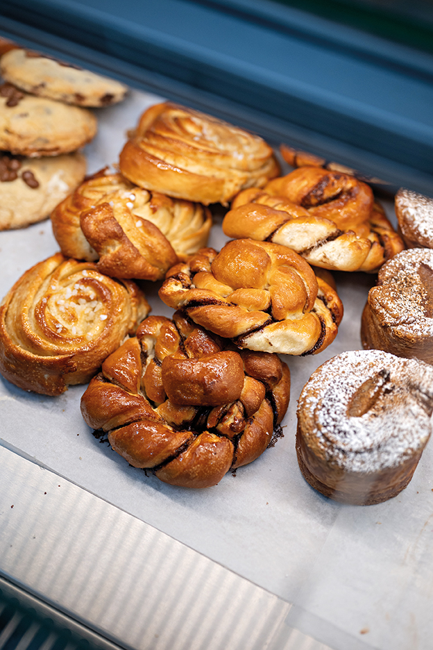 Αυτήν τη στιγμή έχουμε ό,τι σχετίζεται με το προζύμι, είτε μιλάμε για 100% φυσικό προζύμι είτε για ψωμί που συνδυάζει προζύμι με μαγιά, το οποίο ακολουθεί επίσης τριήμερη διαδικασία ωρίμανσης. Σε αυτή την κατηγορία ανήκουν και τα σάντουιτς. Έχουμε και άλλα ζυμάρια με τριήμερη ωρίμανση: κρουασάν, μπριός, potato buns… Ό,τι έχει ζύμη θέλει και χρόνο και φροντίδα.