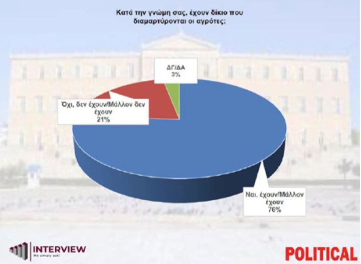 – 76% θεωρεί ότι οι αγρότες έχουν δίκιο να διαμαρτύρονται.