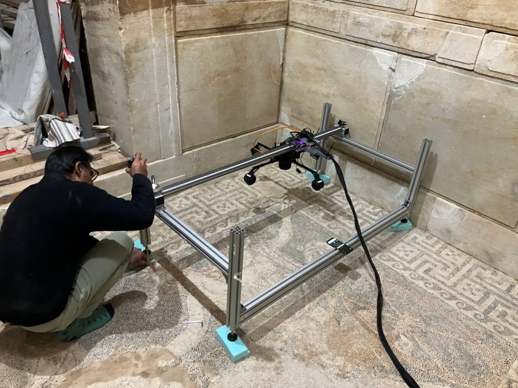 Τύμβος Καστά, ταφικό μνημείο. Φωτογραμμετρική αποτύπωση ψηφιδωτού με το σύστημα Selene Photometric Stereo από την ομάδα του Ιδρύματος Factum Art