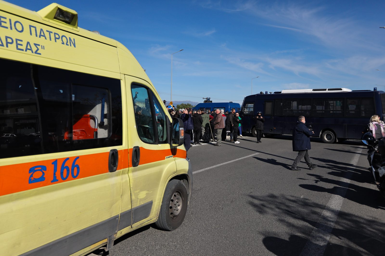 Παράλληλα, μπλοκαρίστηκε η κυκλοφορία δύο ασθενοφόρων, τα οποία έκαναν αναστροφή και έφυγαν. Μάλιστα, υπήρχαν αναφορές ότι μέσα σε ένα από αυτά υπήρχε ασθενής.