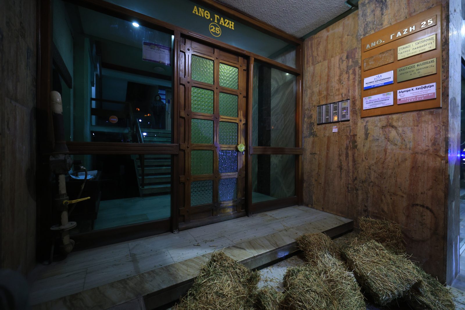Σανό έξω από το γραφείο του Μάξιμου Χαρακόπουλου στη Λάρισα