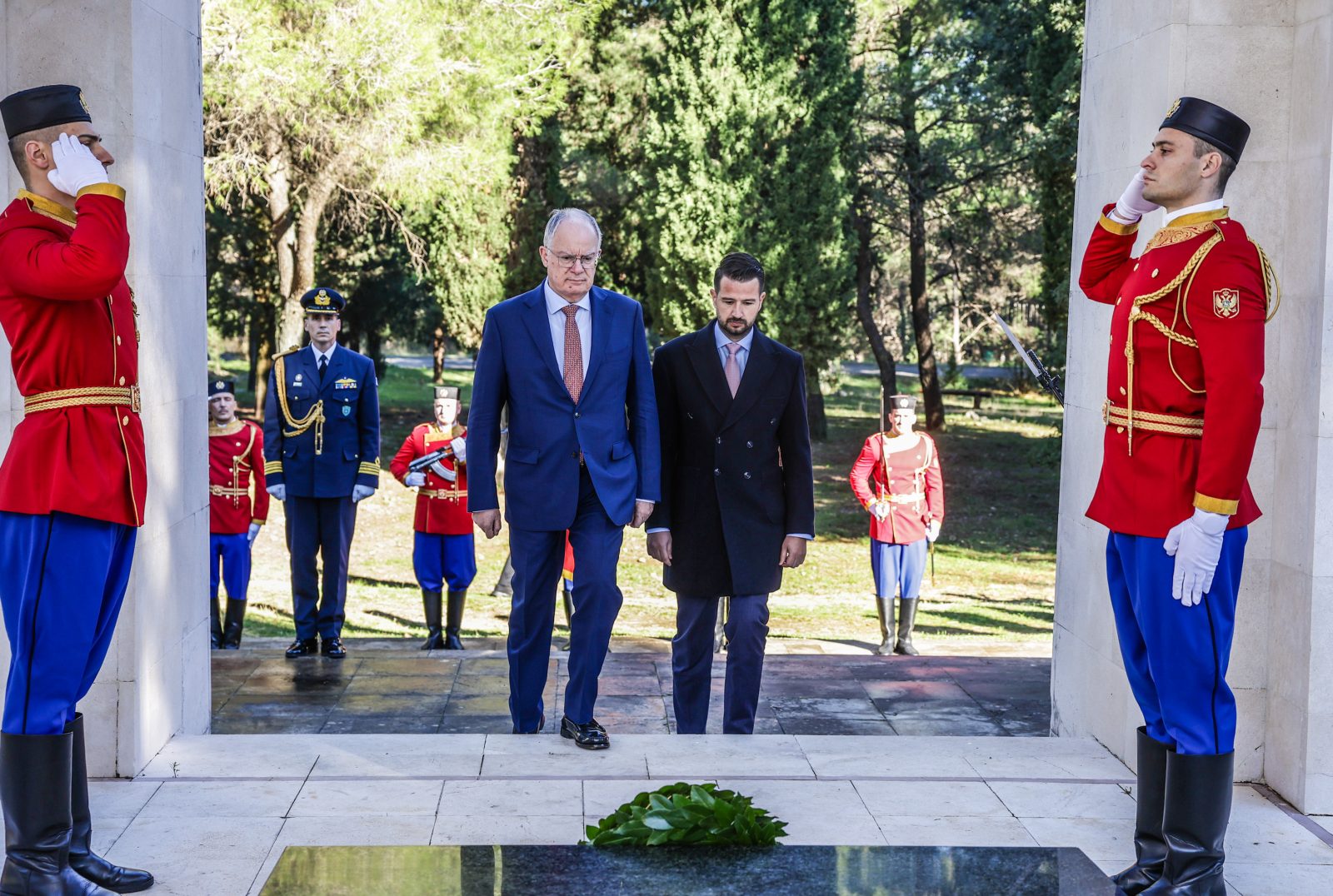 Ο Έλληνας ανώτατος άρχοντας κατέθεσε δάφνινο στεφάνι που ήρθε ειδικά από την Αθήνα με το κυβερνητικό αεροσκάφος στο μνημείο του Βάσσου Μαυροβουνιώτη. Πρόκειται για επαναστάτη με καταγωγή από το Μαυροβούνιου ο οποίος συμμετείχε στην Αγώνα του 1821 για την ελληνική ανεξαρτησία. Πήρε μέρος σε μάχες σε Αθήνα και Βοιωτία και έζησε μετά στο ελεύθερο ελληνικό κράτος.