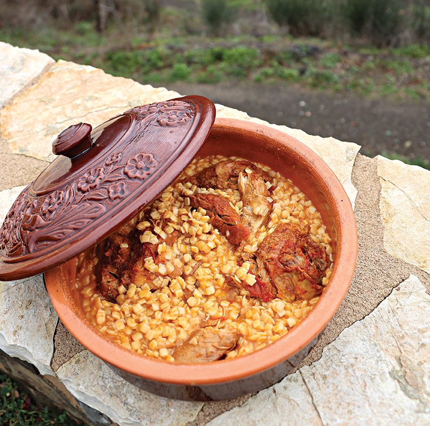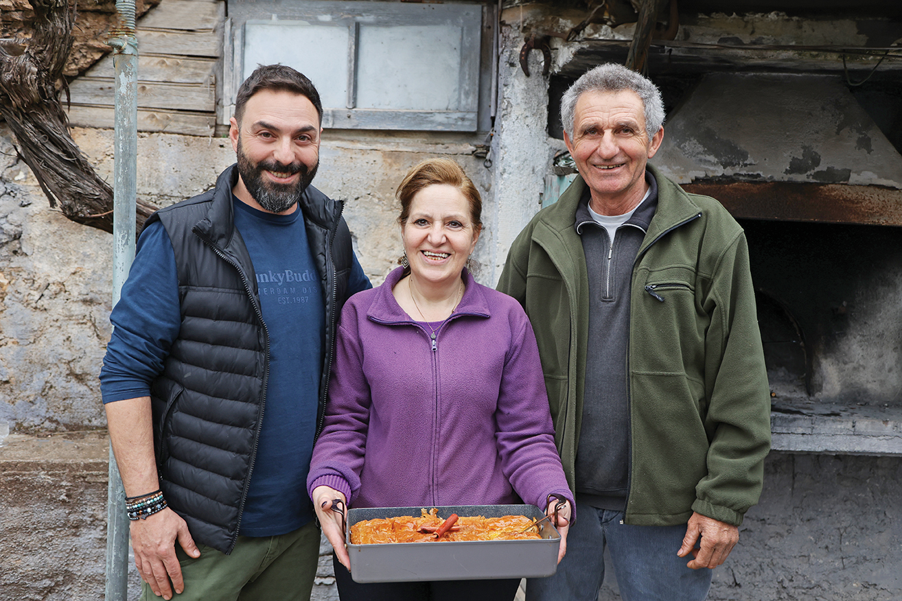 Ο φανταστικός κόκορας με χυλοπίτες που φτιάχνει η Βαγγελιώ στη Ζάτουνα. Φωτό: Αριάδνη Παπαναστασίου