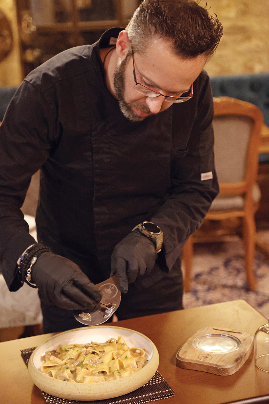Ένα μοναδικό ξενοδοχείο, κρυμμένο σε ένα παρθένο δάσος από έλατα. Το Μάννα έχει δημιουργηθεί για να προσφέρει μια εμπειρία απόλυτης ευεξίας και πολυτέλειας. Εκτός από το καθόλα προσεγμένο περιβάλλον του, το Μάννα έχει επενδύσει και στο εστιατόριό του, προσφέροντας ένα μελετημένο μενού που έχει επιμεληθεί ο σεφ Αθηναγόρας Κωστάκος, αξιοποιώντας και αναδεικνύοντας τα τοπικά προϊόντα. Head chef στην κουζίνα είναι ο χαρισματικός Μιχάλης Χάντζος, ο οποίος μας μύησε στις γεύσεις του ξενοδοχείου. Δοκιμάσαμε μοσχαρίσιο ταρτάρ «σαν σουτζουκάκια» με φρέσκα μυρωδικά, πιπεριά Φλωρίνης και ντόπιες πίκλες, φωλιά πατάτας με τηγανητό αβγό, σύγκλινο Μάνης και καραμελωμένα κρεμμύδια, τυρόπιτα με βαρελίσιο, κατσικίσιο τυρί και τρούφα Μαινάλου και ένα κομψό μους ελληνικού καφέ με σοκολάτα γάλακτος και γλυκό τριαντάφυλλο.