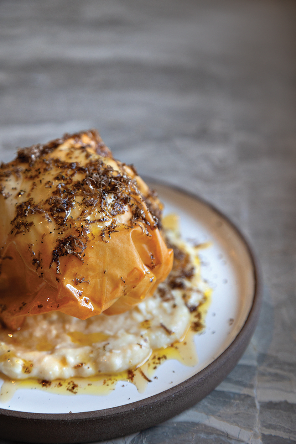 H φανταστική τυρόπιτα με βαρελίσιο κατσικίσιο τυρί και τρούφα Μαινάλου από το μενού του Μάννα. Φωτό: Αριάδνη Παπαναστασίου