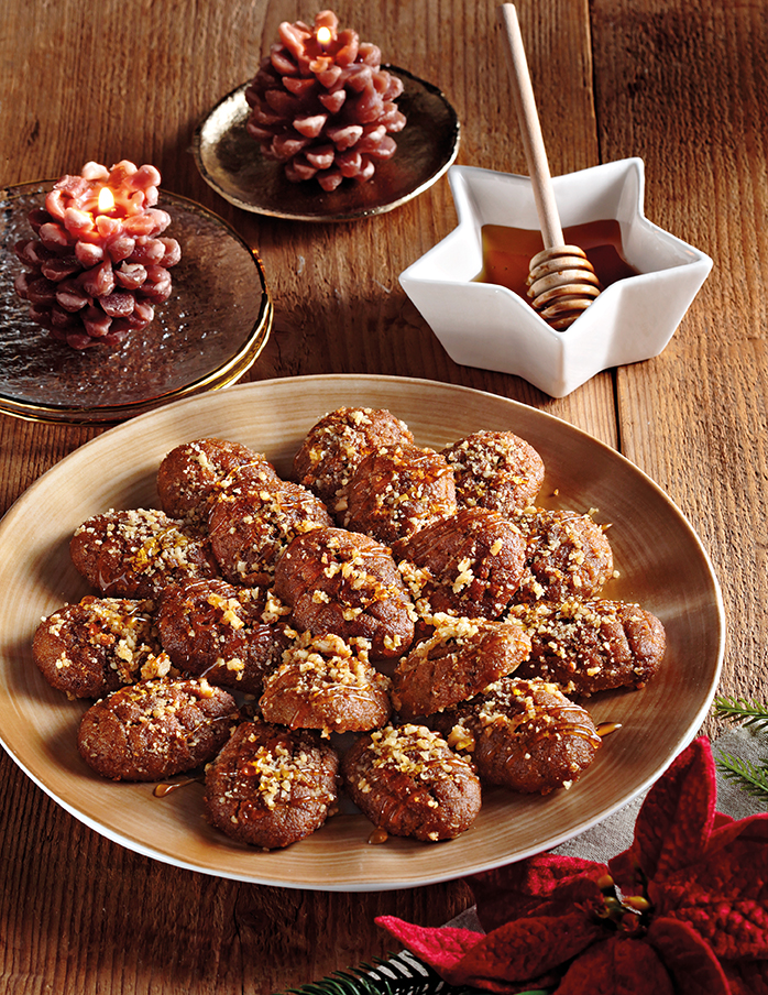 - Μόλις ψηθούν τα μελομακάρονα, τα «βαφτίζουμε» στο χλιαρό σιρόπι και τα μεταφέρουμε κατευθείαν σε μια σχάρα να κρυώσουν. Τα πασπαλίζουμε με τριμμένο καρύδι και σερβίρουμε.