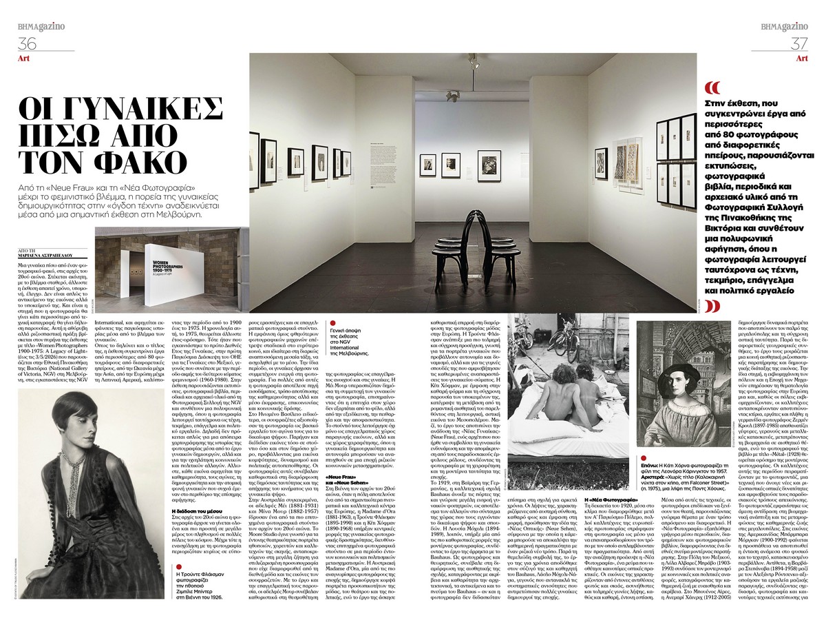 Στις σελίδες του εορταστικού τεύχους, η τέχνη και ο πολιτισμός έχουν πρωταγωνιστικό ρόλο. Από τη «Neue Frau» και τη «Νέα Φωτογραφία» έως το φεμινιστικό βλέμμα, η γυναικεία δημιουργικότητα στην «όγδοη τέχνη» ξεδιπλώνεται μέσα από μια σημαντική έκθεση στη Μελβούρνη.