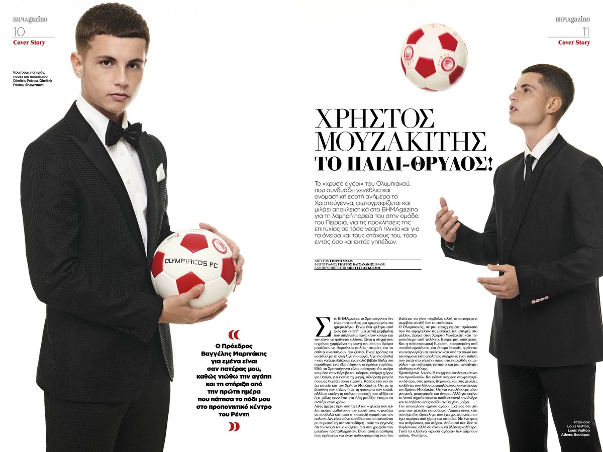 Ο Χρήστος Μουζακίτης, το 19χρονο «χρυσό αγόρι» του Ολυμπιακού, φωτογραφίζεται αποκλειστικά για το περιοδικό και μιλά με ειλικρίνεια για τη ραγδαία άνοδό του, τις προκλήσεις της επιτυχίας σε τόσο νεαρή ηλικία και τα όνειρα που δεν χωρούν πια μόνο στα ελληνικά γήπεδα. Κρατώντας στα χέρια του την μπάλα της ομάδας που τον ανέδειξε, εύχεται χρόνια πολλά καθώς ετοιμάζεται για τα πιο ξεχωριστά Χριστούγεννα της ζωής του, με όλη την Ευρώπη στα πόδια του.