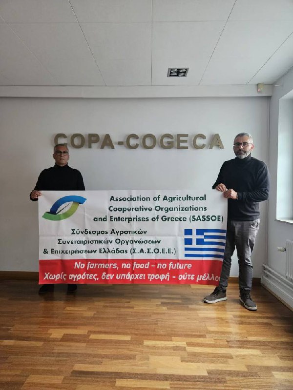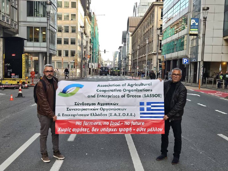 Δύο Έλληνες, ο Γιώργος Κατσούλης και Γιάννης Φουντουλάκης, ταξίδεψαν από την Αθήνα στις Βρυξέλλες, προκειμένου να διαδηλώσουν για τα αγροτικά ζητήματα που αφορούν την Ένωση. Ο πρώτος είναι πρόεδρος του Συνδέσμου Αγροτικών Συνεταιριστικών Επιχειρήσεων Ελλάδας (ΣΑΣΟΕΕ) και ο δεύτερος είναι πρόεδρος του Εποπτικού Συμβουλίου.