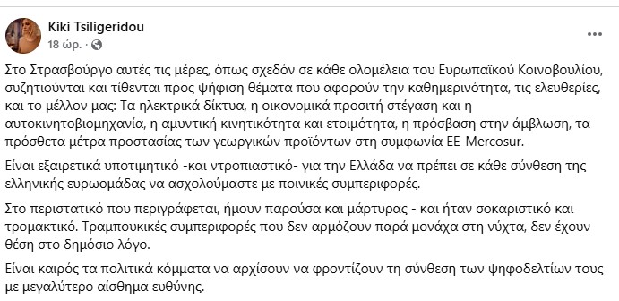 Θέση για τον ξυλοδαρμό του Νίκου Γιαννόπουλου από τον Νίκο Παππά στο Στρασβούργο πήρε η Κική Τσιλιγκερίδου. Η δημοσιογράφος σε ανάρτησή της επισημαίνει ότι ήταν παρούσα στο συμβάν και επιτέθηκε στον ευρωβουλευτή.