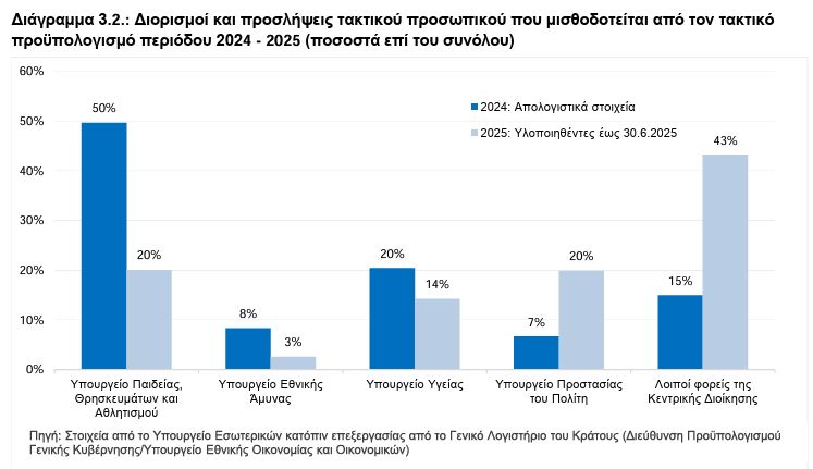 «Το μεγαλύτερο ποσοστό εξ αυτών για κάθε ένα από τα έτη 2025 και 2026 εκτιμάται ότι θα συνεχίσουν να καταλαμβάνουν τα τέσσερα προαναφερθέντα υπουργεία», σημειώνεται στην Έκθεση.