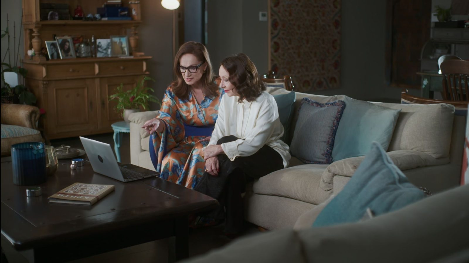 Η Λυδία Φωτοπούλου με την Φιλαρέτη Κομνηνού στα γυρίσματα της σειράς «Μια νύχτα μόνο». Φωτογραφία: Γιώργος Καπλανίδης
