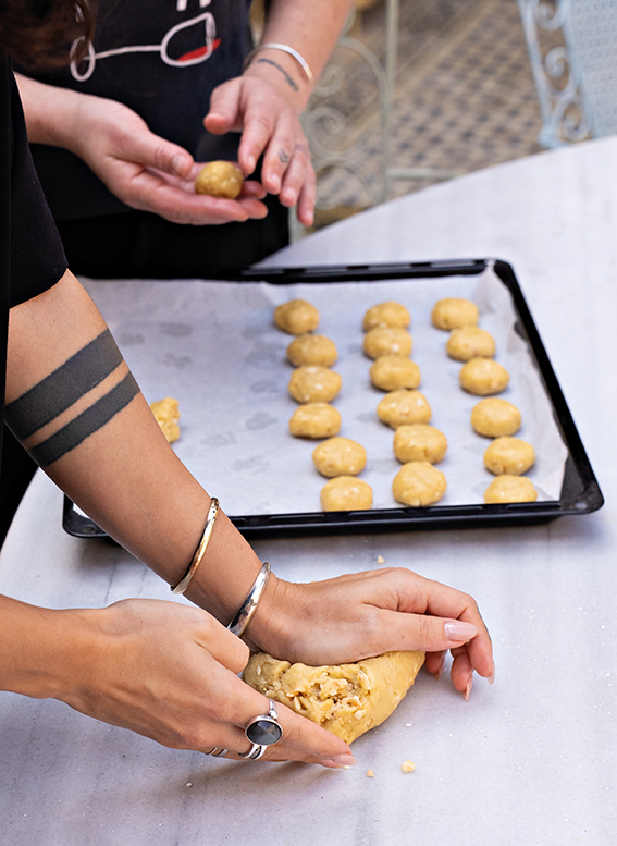 Γρήγοροι κι εύκολοι στην παρασκευή τους αλλά πεντανόστιμοι οι κουραμπιέδες που μας ετοίμασαν η Αγάπη και η Βιβή. Φωτό: Χρήστος Καββούρης