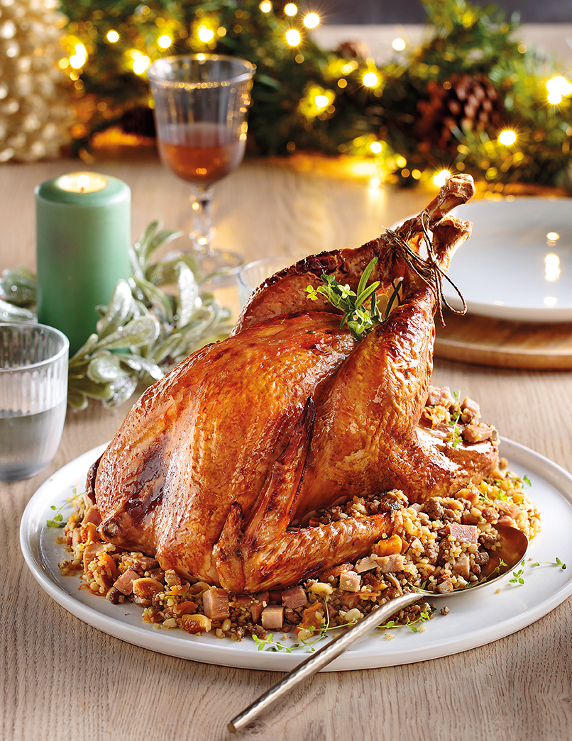 Γαλοπούλα γεμιστή με κιμά, κάστανα, σύκα και πλιγούρι