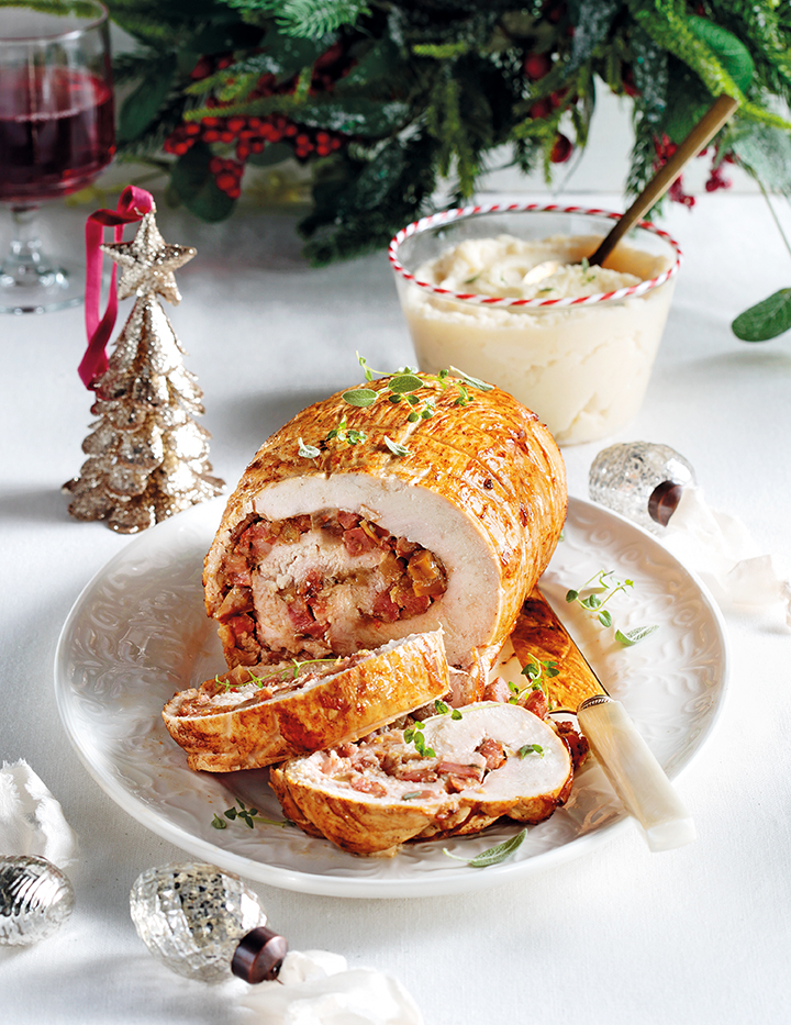 Στήθος γαλοπούλας γεμιστό με κάστανα και σταφίδες
