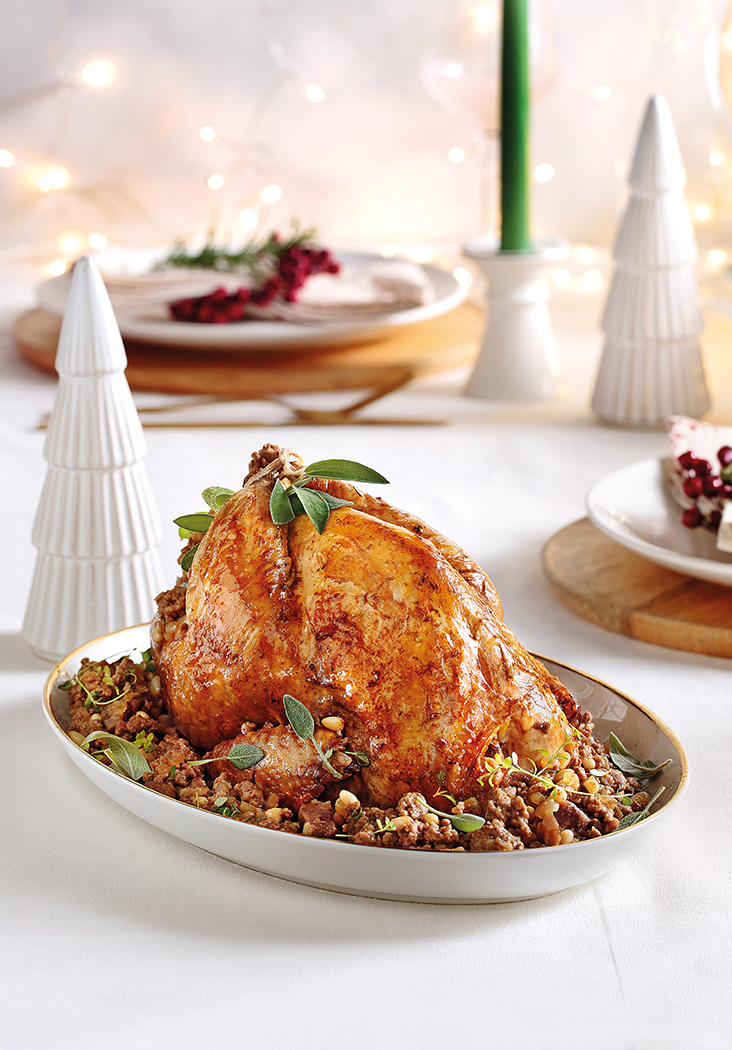 Γι’ αυτό κι εμείς είπαμε φέτος, ενόψει Χριστουγεννιάτικου γεύματος, να κάνουμε μια “ζαβολιά”. Αντί να ψάξουμε εμείς για το κυρίως που θα μπει στο κέντρο του τραπεζιού και θα προκαλέσει κύματα ενθουσιασμού, να ζητήσουμε από 3 καταξιωμένους σεφ να το κάνουν για εμάς. Κοινώς, απευθυνθήκαμε στην Ελένη Τοδούλου από το Θεσσαλονικιώτικο Κιτς και σ’ έφαγα, τη Θεοδώρα Σακαγιάννη του Cinapos και τον Γιώργο Τσούλη του TwentyFive Restaurant, τους ζητήσαμε να μας προτείνουν εκείνοι ένα πιάτο με κεντρικό ήρωα ένα πουλερικό, φτιαγμένο για να κλέβει την παράσταση. Εκείνοι το έκαναν, μας ετοίμασαν πιάτα εντυπωσιακά και πρωτότυπα, κάνοντας ακόμη και την επιλογή ανάμεσά τους πολύ δύσκολη υπόθεση.