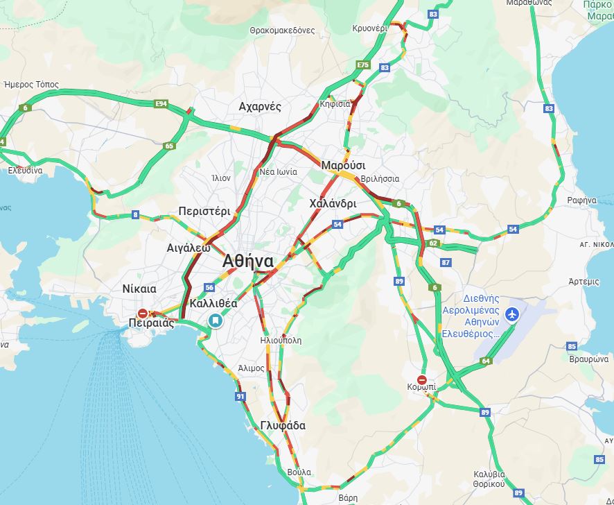Δείτε εδώ ζωντανά την κίνηση στους δρόμους.