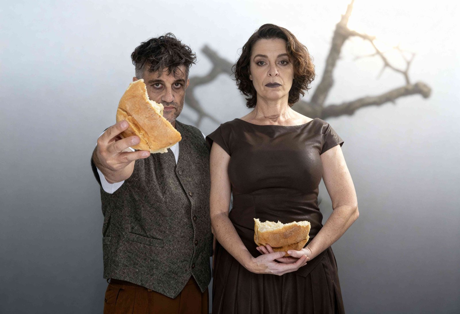 Ο Σίμος Κακάλας υποδύεται τον Χουάν στη «Γέρμα» σε σκηνοθεσία Μαρίας Πρωτόπαππα. @Ρούλα Ρέβη/Artwork: Γιάννης Σταματόπουλος