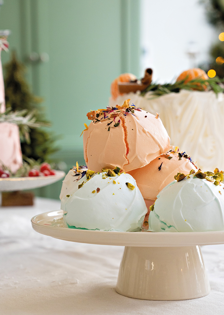 Αν τα Χριστούγεννα είναι η γιορτή της οικογένειας, η ευκαιρία για να μαζευτούν κοντινοί και πιο μακρινοί συγγενείς ξανά γύρω από το τραπέζι, η Πρωτοχρονιά είναι μια αρκετά διαφορετική υπόθεση. Η Παραμονή κατ’ εξοχήν αφιερώνεται σε φίλους, αναλώνεται σε μεγάλα καλέσματα και ξέφρενα πάρτι και επιτρέπει -αν όχι επιβάλλει- τη χρήση φαντασίας. Και τα γλυκά, όμως, φαντασία χρειάζονται. Και η Νάντια Πολυζώη άφησε τη δική της να ελεύθερη και δημιούργησε, ειδικά για τα τραπέζια της Πρωτοχρονιάς, τα πιο παραμυθένια, εντυπωσιακά γλυκά σε παστέλ αποχρώσεις και σε γεύσεις που λες και υπόσχονται ότι η νέα χρονιά θα είναι… του ονείρου!