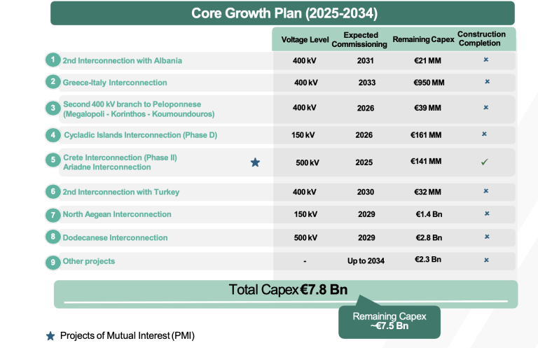 Ώριμη βέβαια είναι και η επένδυση της δεύτερης ηλεκτρικής διασύνδεσης Ελλάδας με την Ιταλία ύψους 950 εκατ. ευρώ με ορίζοντα υλοποίησης το 2033.