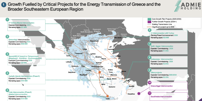 Ο ΑΔΜΗΕ διεκδικεί πρωταγωνιστικό ρόλο στην διασύνδεση της Ευρώπης με τη Σαουδική Αραβία – SaudiGreek Interconnection, τη διασύνδεση με την Αίγυπτο (GREGY) αλλά και τη διασύνδεση της Ελλάδας με τα Δυτικά Βαλκάνια και την Κεντρική Ευρώπη – Green Aegean Interconnection. Και φυσικά το έργο game changer είναι εκείνο της ηλεκτρικής διασύνδεσης Ελλάδας – Κύπρου – Ισραήλ – Great Sea Interconnector.