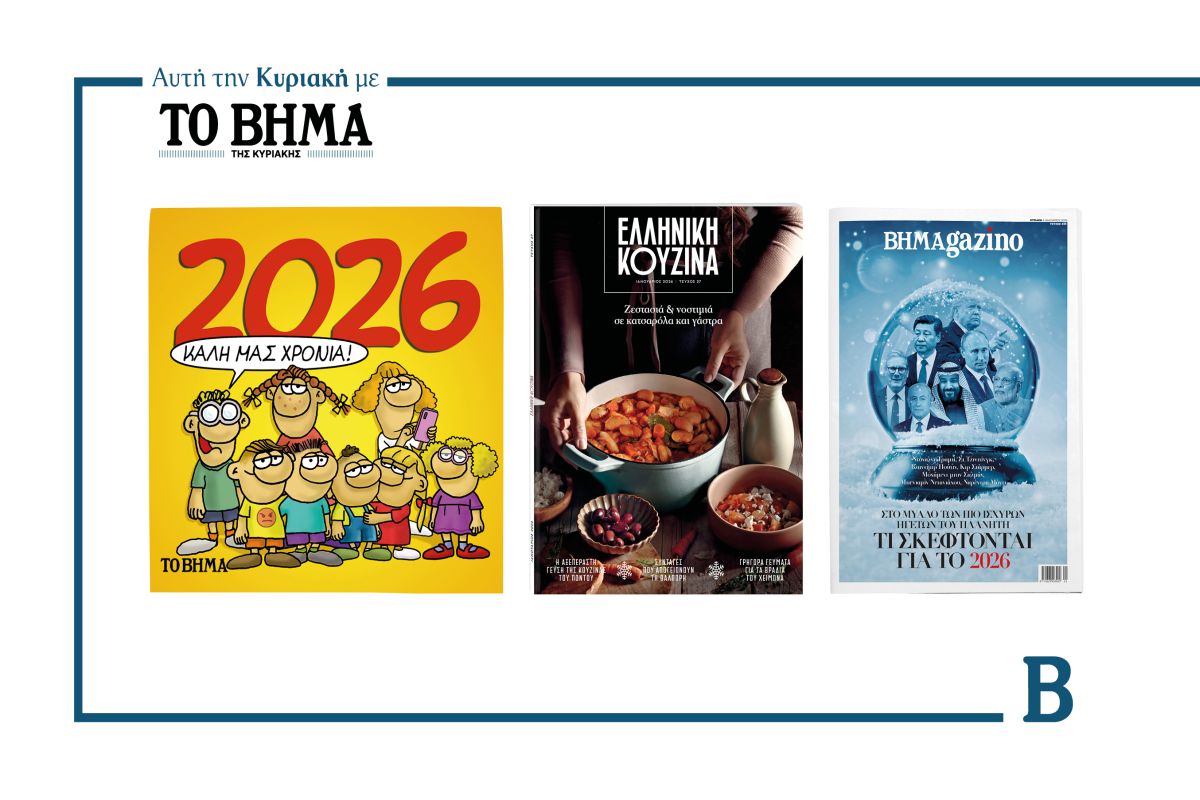 Την Κυριακή 4 Ιανουαρίου το «Βήμα της Κυριακής» κυκλοφορεί με συναρπαστικές προσφορές: ο Αρκάς με το ξεκαρδιστικό ημερολόγιο 2026 που επανακυκλοφορεί, το περιοδικό Ελληνική Κουζίνα, και όπως κάθε Κυριακή, ΒΗΜΑGAZINO.