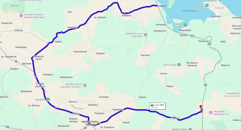 2) έξοδος από τον Αυτοκινητόδρομο στον Α/Κ Αταλάντης και κινούμενοι μέσω Αταλάντης και Ορχομενού, να εισέλθουν στον Α/Κ Κάστρου (επισυνάπτεται σχετική οπτική απεικόνιση)