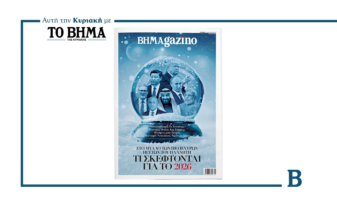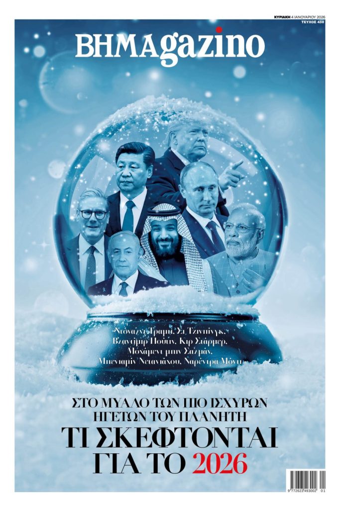 Το “BHMAGAZINO” που κυκλοφορεί την Κυριακή 4 Ιανουαρίου, όπως πάντα με το «ΒΗΜΑ ΤΗΣ ΚΥΡΙΑΚΗΣ», φιλοξενεί στο εξώφυλλό του, μέσα από ένα ιδιαίτερο, εντυπωσιακό γράφημα, τους επτά πιο ισχυρούς ηγέτες του κόσμου.
