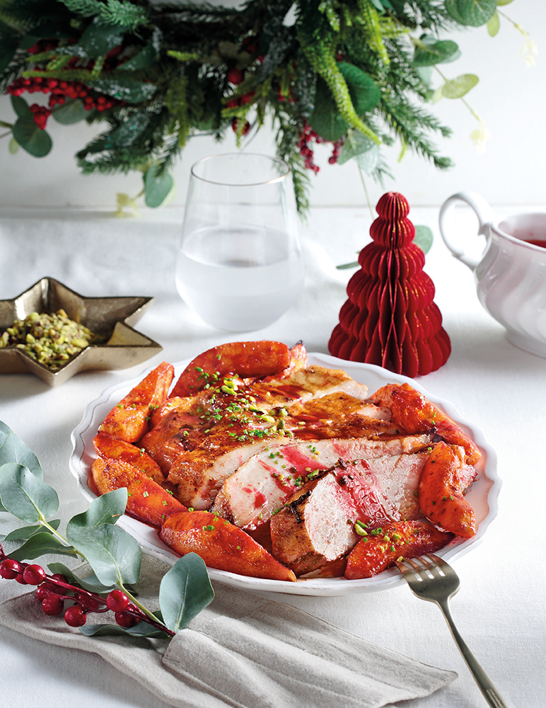 Εμείς, όμως, φέτος θέλαμε να κάνουμε κάτι διαφορετικό. Να μαγειρέψουμε ένα χοιρινό που θα κλέψει την παράσταση στο τραπέζι της Πρωτοχρονιάς, κάτι που κανένας από τους καλεσμένους μας δεν θα έχει γευτεί ξανά. Γι’ αυτό και ζητήσαμε τη βοήθεια τριών σεφ, που τούτες τις μέρες δουλεύουν διπλά και τριπλά για να στήσουν τα πιο εύγεστα και ευφάνταστα εορταστικά μενού. Και οι τρεις τους έβαλαν όλη τους την έμπνευση και δημιούργησαν για εμάς πιάτα ξεχωριστά και εντυπωσιακά, συνδυάζοντας το χοιρινό με ξηρούς καρπούς και φρούτα της εποχής.