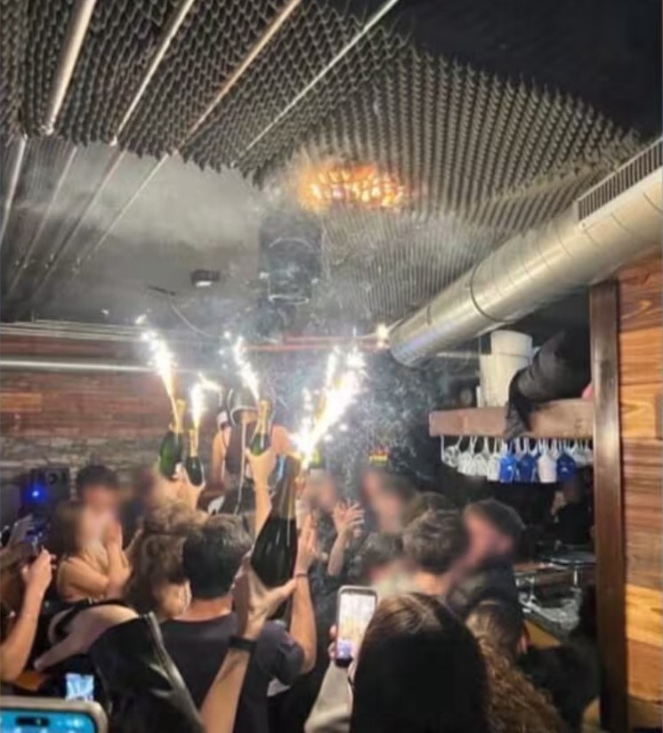 «Όλα υποδηλώνουν ότι η φωτιά ξεκίνησε από σπινθηροβόλα κεριά που ήταν τοποθετημένα στο στόμιο φιαλών σαμπάνιας. Αυτά έφτασαν πολύ κοντά στην οροφή. Από εκεί, ακολούθησε μια γρήγορη, πολύ γρήγορη και εκτεταμένη πυρκαγιά», τόνισε η εισαγγελέας Πιού.